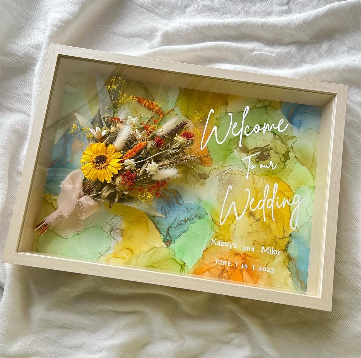 veilinkartのヘアゴム。 ゴールドフレームとマッチして とってもおしゃれ♡ アルコールインクアートはインクの特性上 紫外線や経年変化によって褪色します。 直射日光の当たらない場所で保管してください。 色の変化もアートの一部として お楽しみいただけると幸いです。